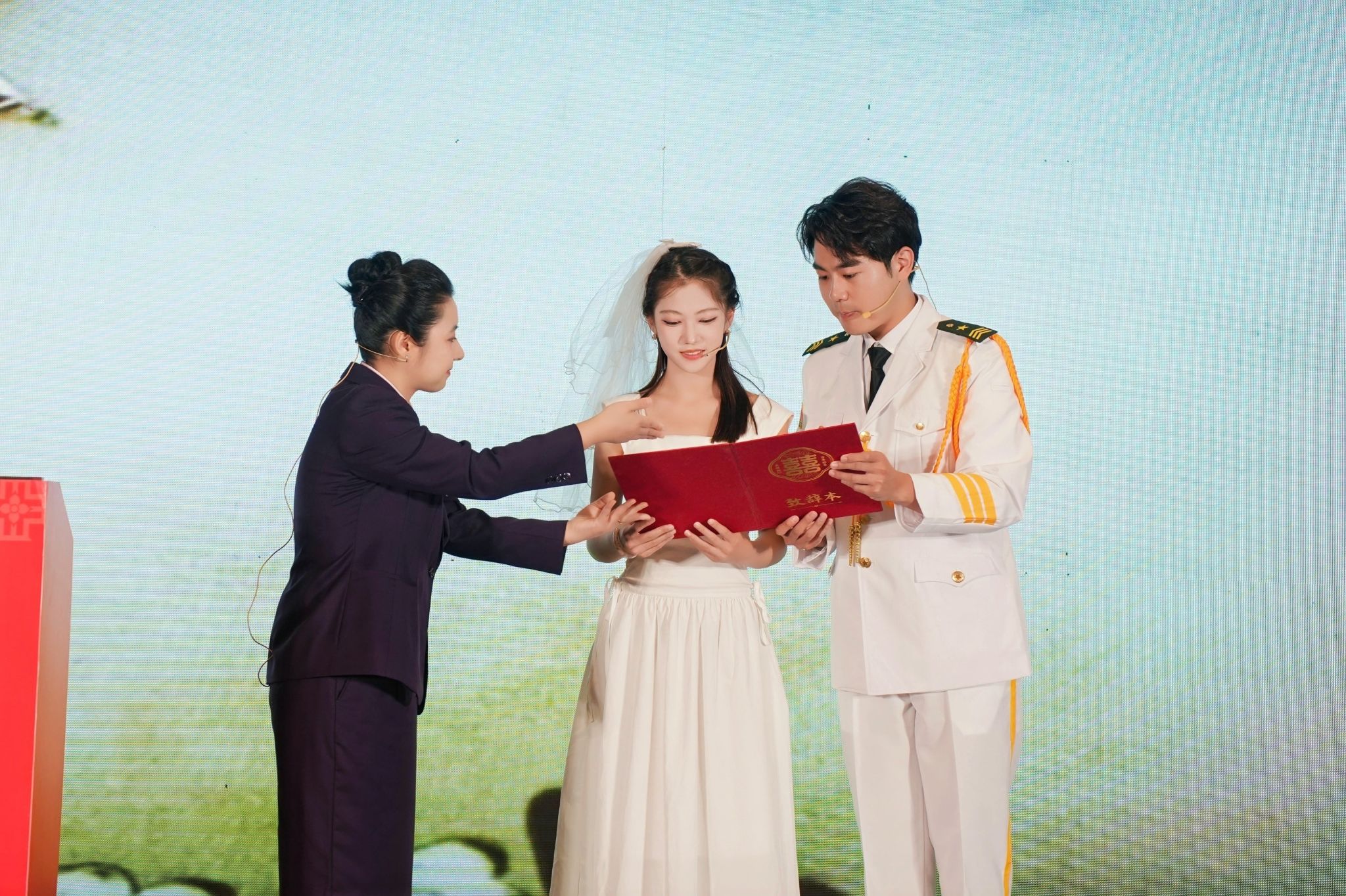 备赛期间,在李凡老师的带领下,两位学子系统研习《结婚登记颁证工作规范》等政策要求,反复打磨颁证词设计、仪式流程衔接等细节,通过模拟不同群体颁证场景,锤炼临场应变能力。从理论知识夯实到实践技能精进,从个人风采展示到团队协作磨合,每一个环节的精益求精,不仅是对比赛的严谨态度,更是对"重登记、强责任、崇节俭"婚俗新风的生动践行。