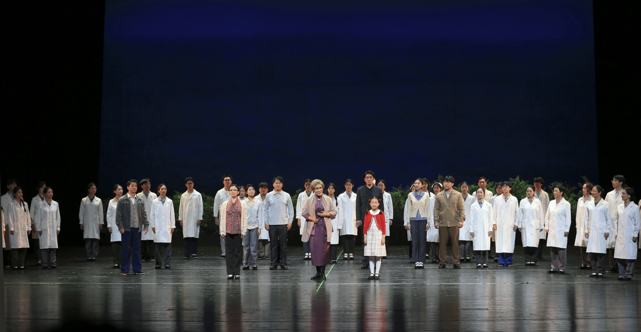 学生积极参与合唱与场景演出。特别值得一提的是,陈曦老师作为老年屠呦呦的饰演者,自该剧首演以来已巡回演出60多场,她对角色的理解与诠释已臻化境。