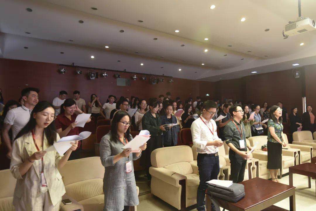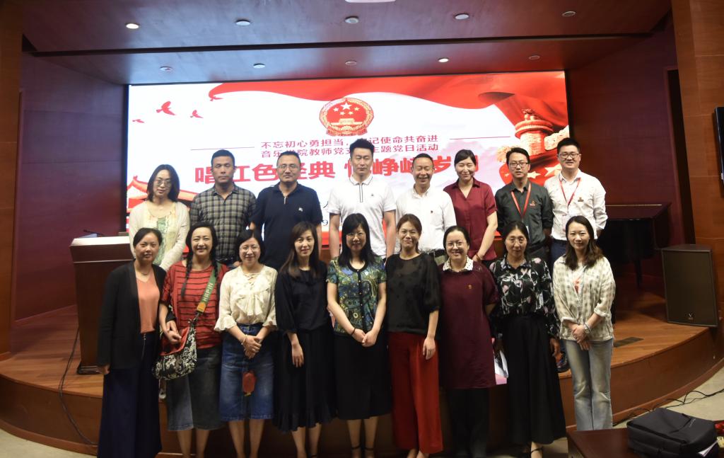 第二环节,支部党员薛楠、刘子彧等老师带领全场师生分别重温共唱《国际歌》《五月的鲜花》《歌唱祖国》等经典革命歌曲。全场师生党员,无论是音乐专业的教师和学生,还是观摩团非音乐专业的老师,大家在经典音乐的感染下,引吭高歌,在熟悉的歌词、旋律中感悟初心力量。主题党日活动在全体参加者合唱《我和我的祖国》中结束。