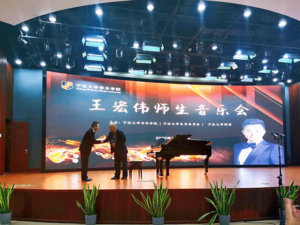音乐会正式开始前,俞子正院长为音乐会致辞,并向王宏伟授予学院客座教授的证书。王宏伟先生表示,司机社