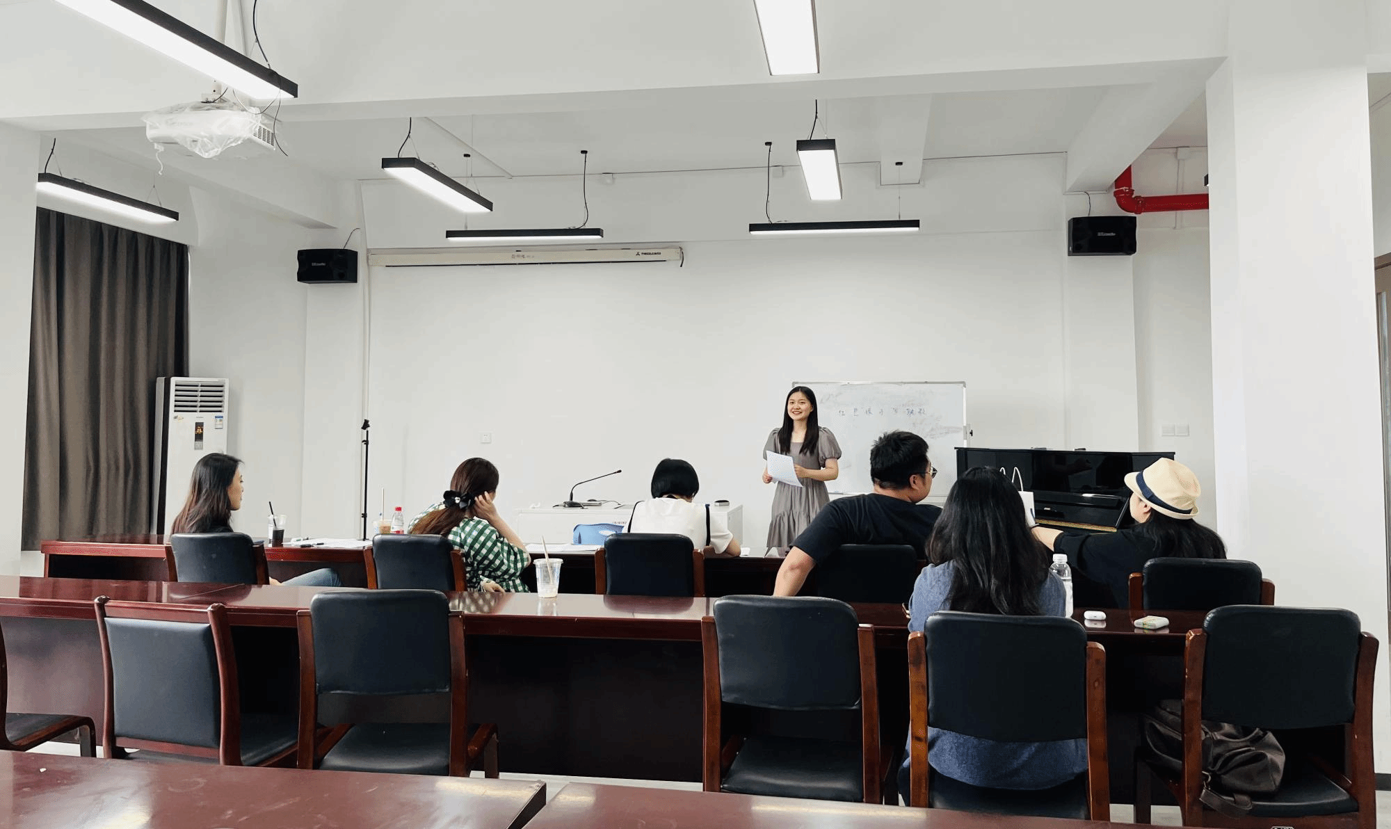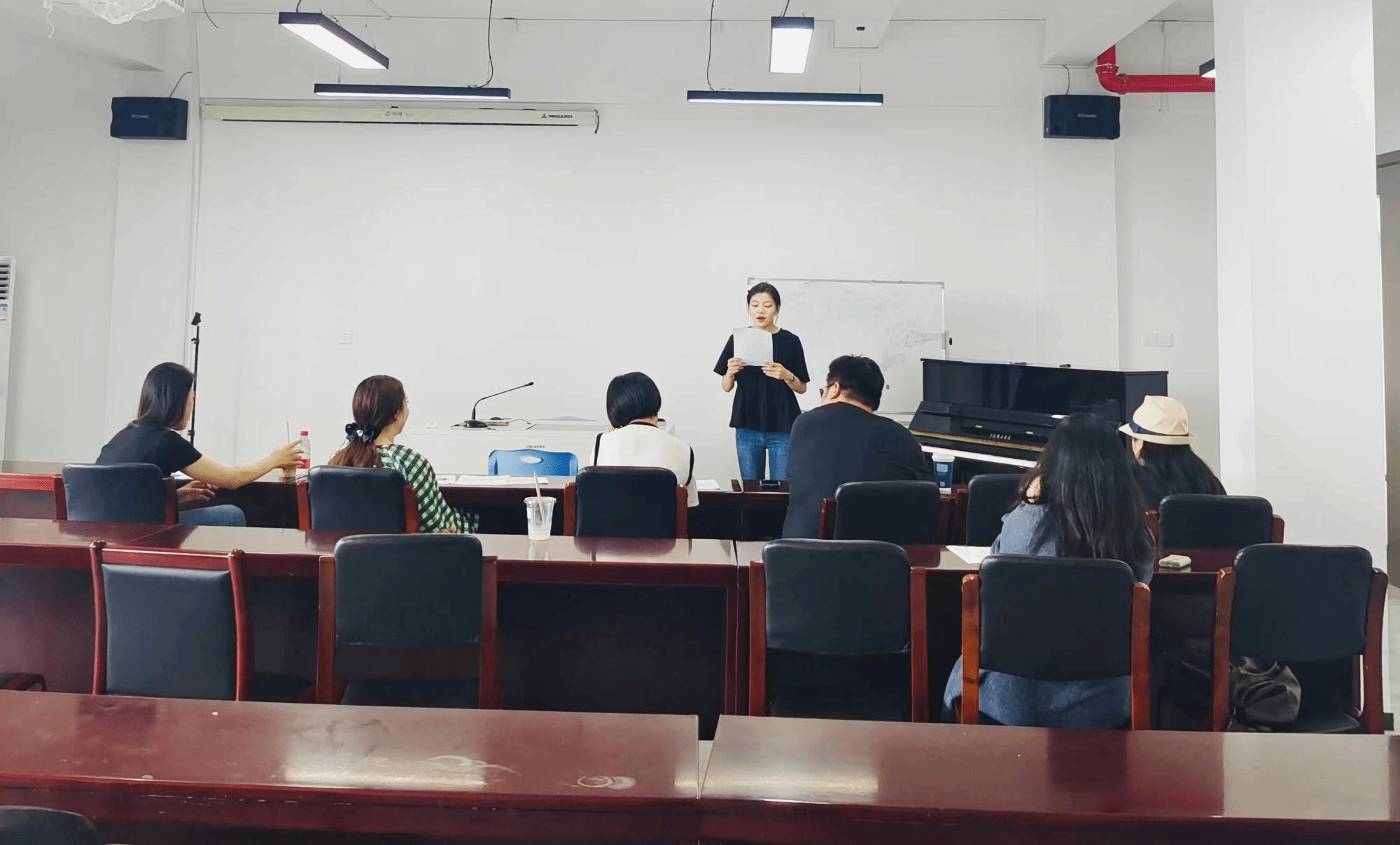 本次竞赛的流程严格按照浙江省师范生技能大赛规程操作,选手根据抽取的题目进行一课时的教学设计,选取核心内容进行8分钟模拟上课及板书设计,评委根据选手的教学设计、教学仪态、模拟上课表现、板书、弹唱能力等提出问题和教学建议,并现场打分。在所有选手都展示结束后,评委老师们充分肯定选手的优点,也对选手的不足之处提出指导和建议。最后,最终入围校决赛的分别是仇梦娜、杨一涛、黄祺茜、张欣然、钟欣怡五位同学。