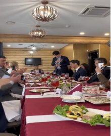 在市长波罗托夫招待访问团的欢送宴上,李老师献上中国歌曲《父亲的草原母亲的河》,把宴会推向高潮。