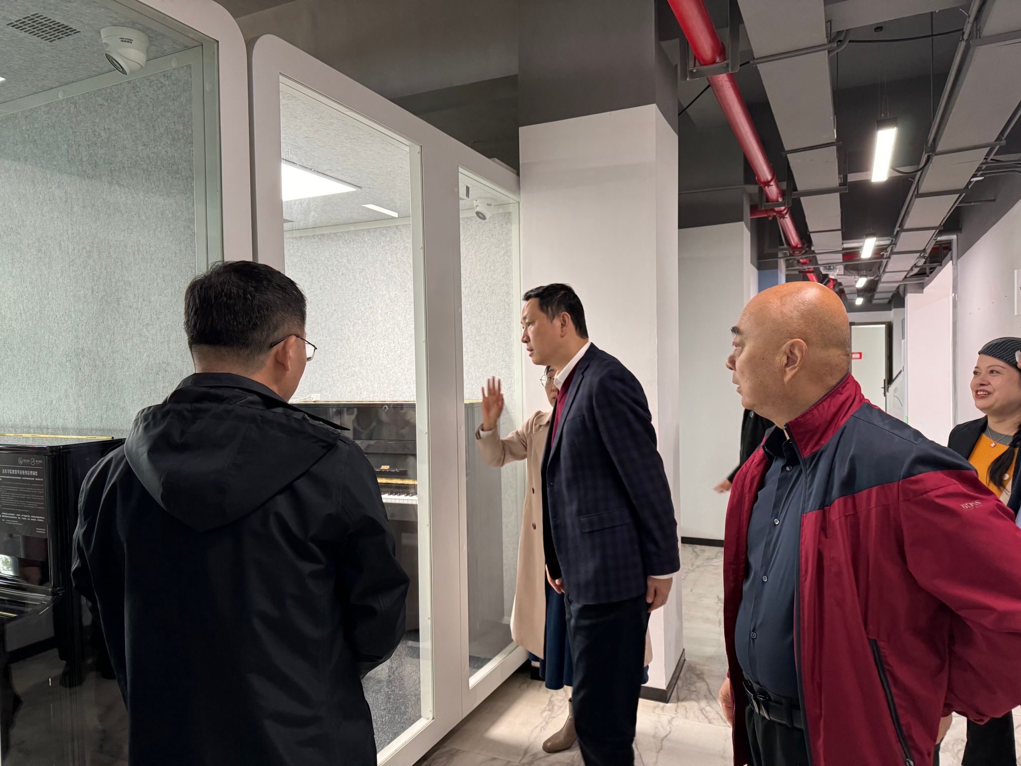 座谈会前,谢斌一行实地参观了学院智慧琴房、声乐专业教室,古琴房、教工之家等。
