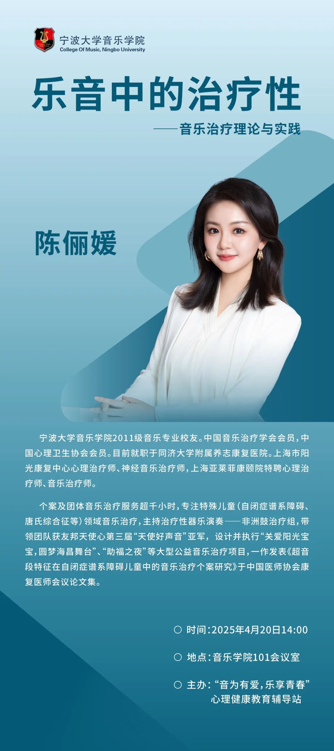 讲座预告|“乐音中的治疗性——音乐治疗理论与实践”即将开启