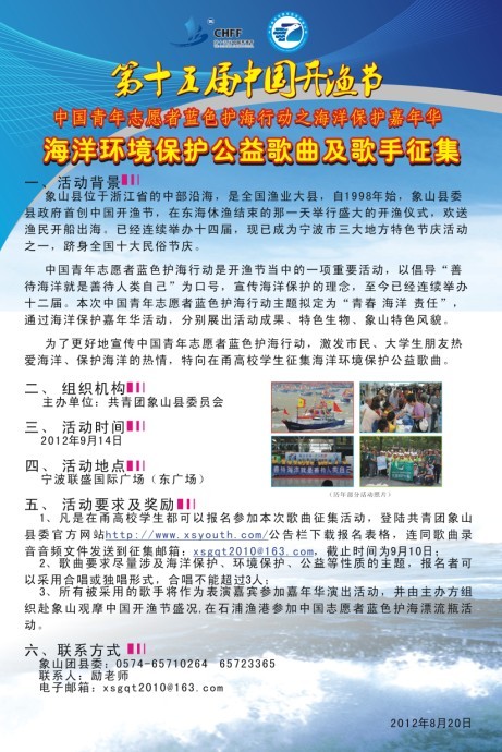 【比赛】第十五届中国开渔节海洋环境保护公益歌曲及歌手征集