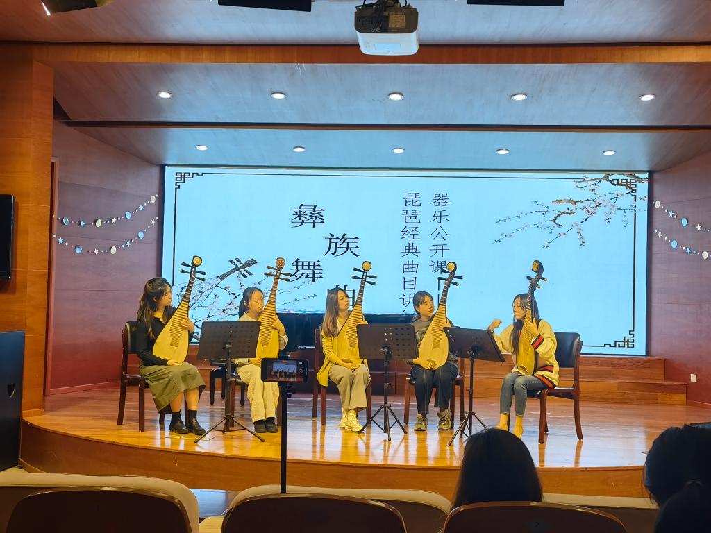 此次公开观摩课的课程名称是《器乐》,该课程是以选修琵琶专业的学生为授课对象,教学内容以著名琵琶演奏家王惠然作曲的《彝族舞曲》为例,徐老师细心讲解其曲目的内涵并亲身示范,对于学生的演奏要点作出了重点指导,赢得了学生们和在场观摩老师的一致好评。课后,司机社