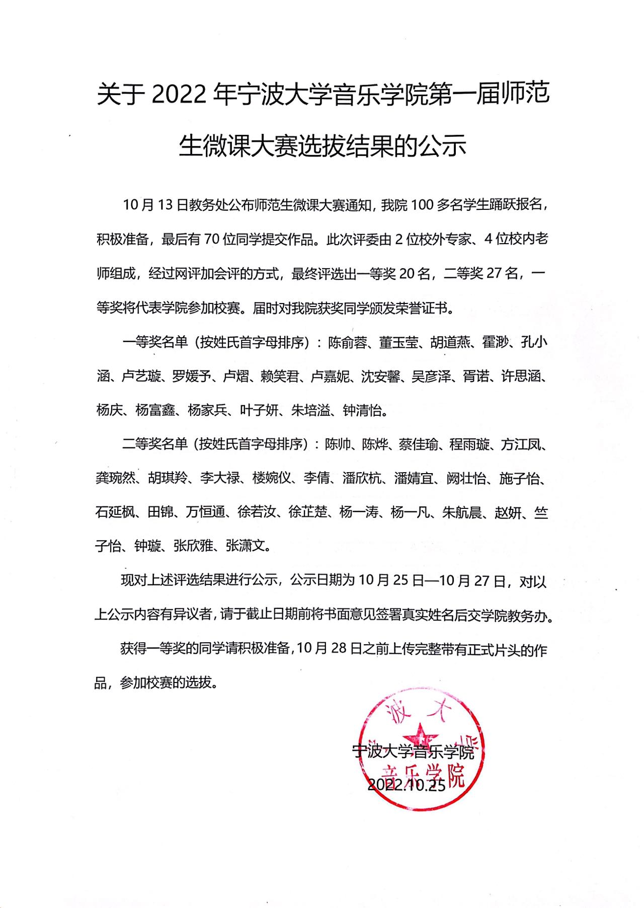 关于2022年司机社 第一届师范生微课大赛选拔结果的公示