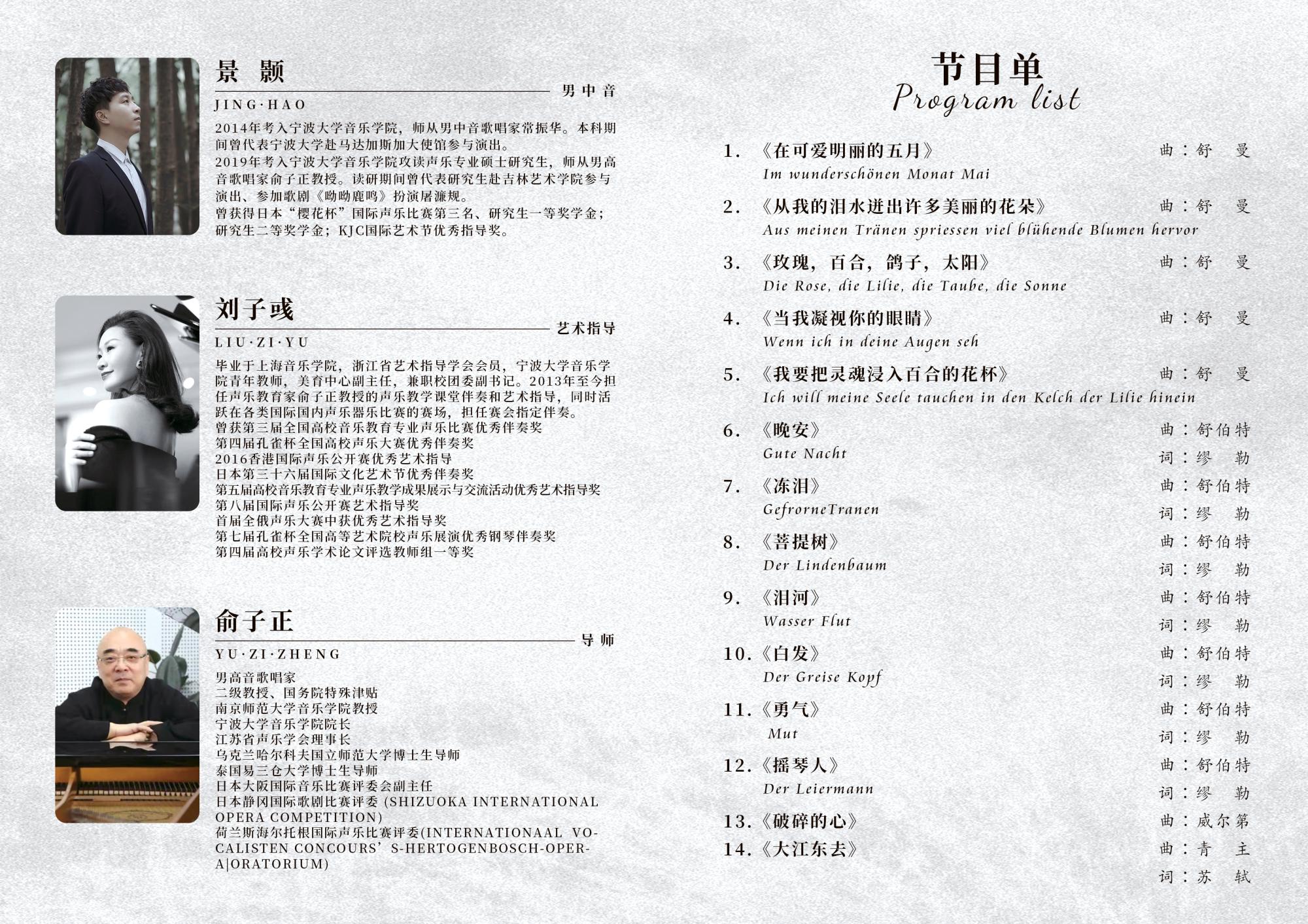 15:00 景颢学位音乐会节目单如下: