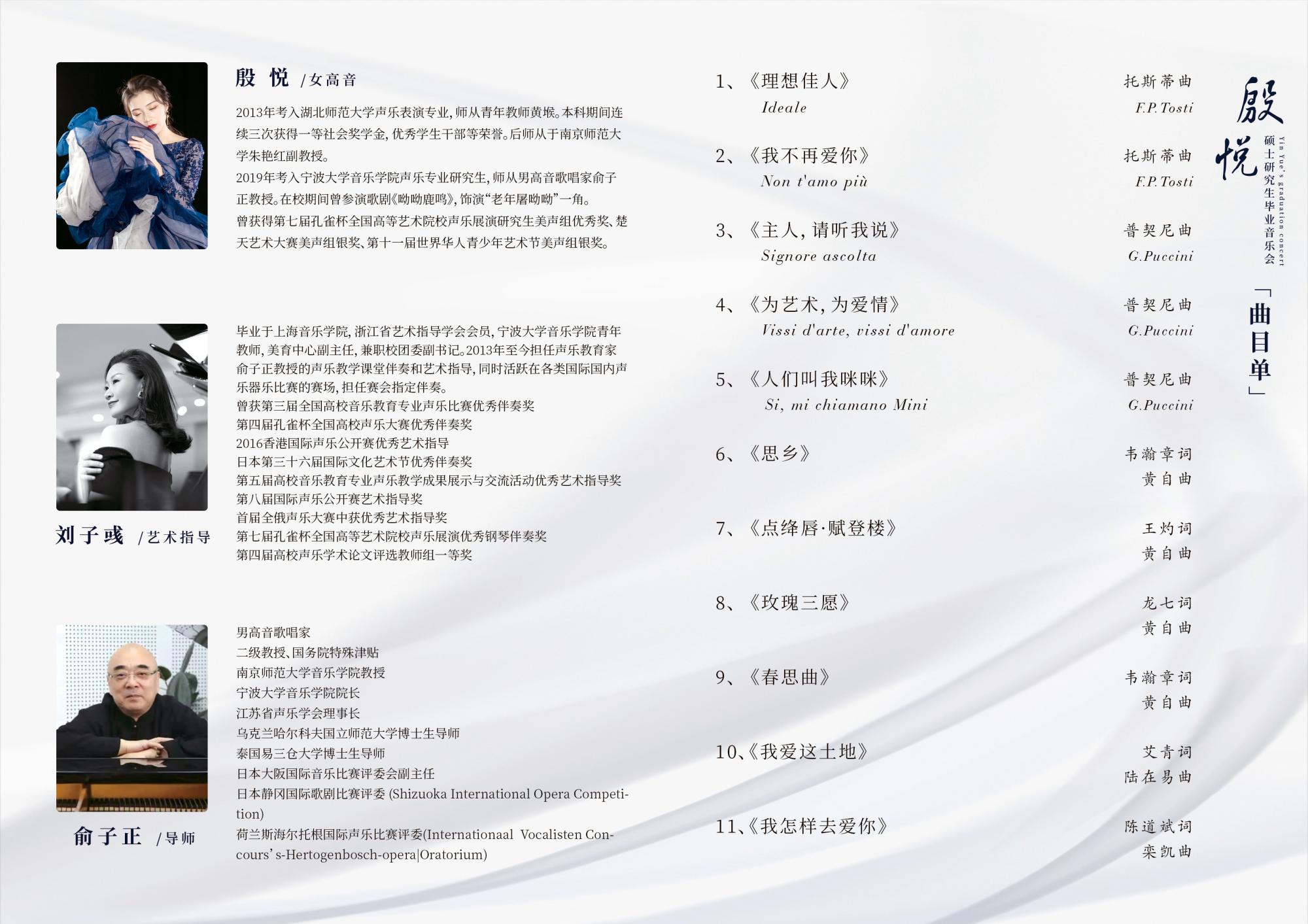 17:00 殷悦学位音乐会节目单如下: