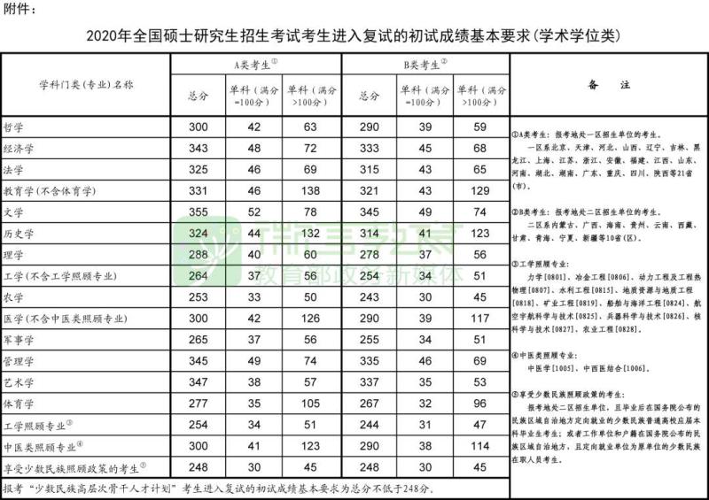 考生进入复试的初试成绩基本要求