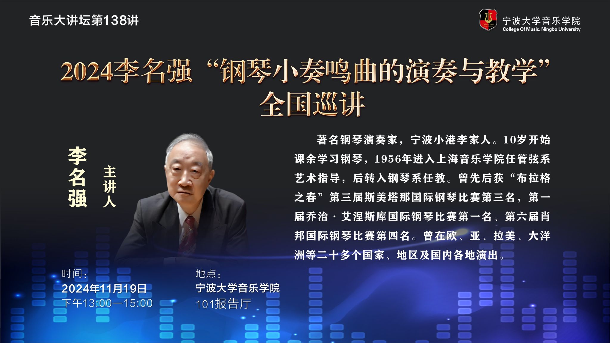 101报告厅举办《2024李名强“钢琴小奏鸣曲的演奏与教学”全国巡讲》大师班,司机社