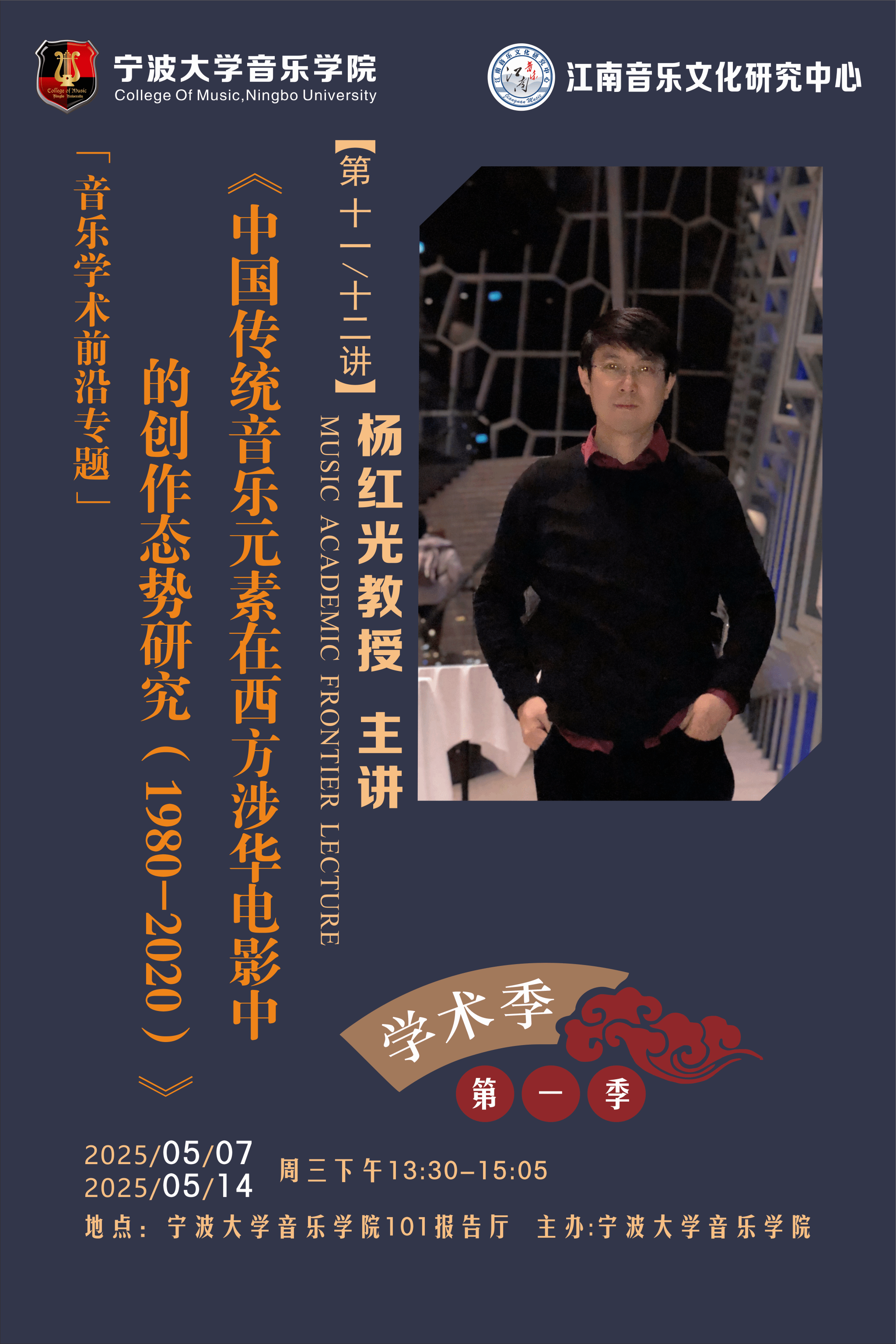 2025年“音乐学术前沿专题”讲座第十一、十二讲:杨红光《中国传统音乐元素在西方涉华电影中的创作态势研究(1980-2020)》