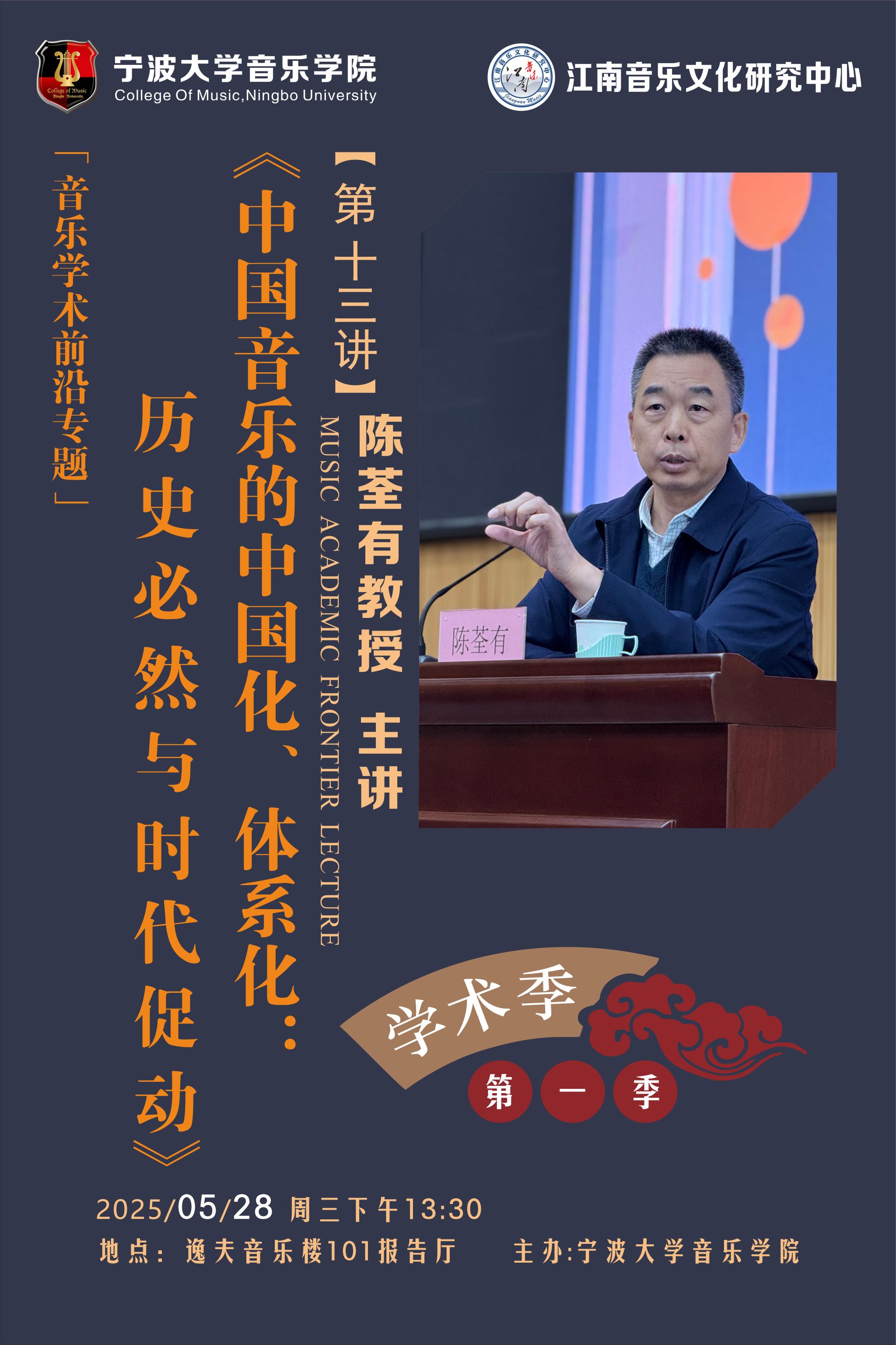 2025年“音乐学术前沿专题”讲座第十三讲:陈荃有《中国音乐的中国化、体系化:历史必然与时代促动》