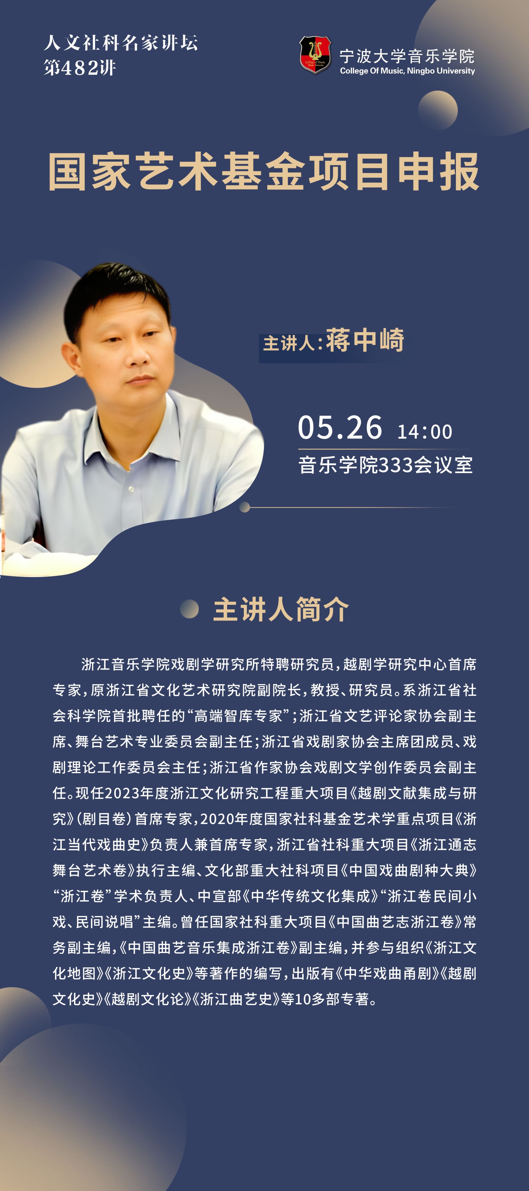 人文社科名家讲坛第482讲:蒋中崎《国家艺术基金项目申报》