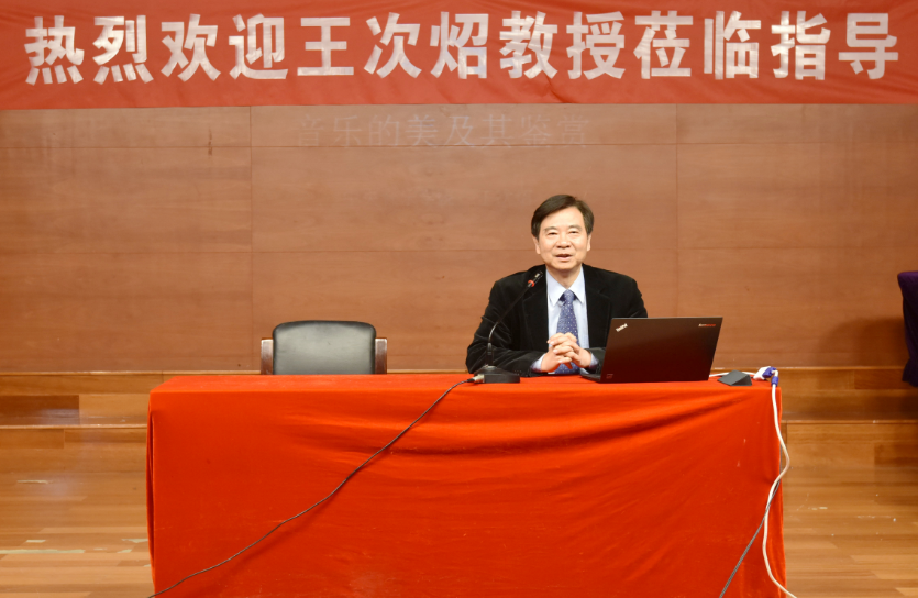 在柴可夫斯基《如歌的行板》的音乐声中拉开了本次讲座的序幕。随后,王次炤教授通过一系列耳熟能详的西方经典的乐曲,向在场的师生们传达了“音乐的美包含在听众对基本情绪的感受之中,包含在听众对音乐风格的体验之中,包含在听众体验到的作品的精神内涵之中,包含在听众被音响所激发的想象之中”的鉴赏要领。