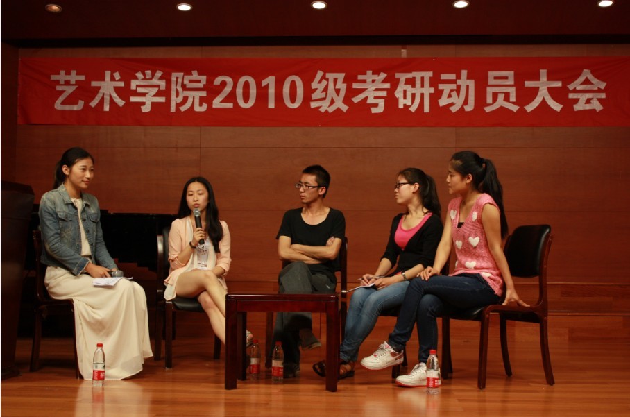 2010级考研动员大会暨“艺苑青年成长论坛”第七讲——“我们的考研之路”优秀学子考研经验交流会在小音乐厅举行。