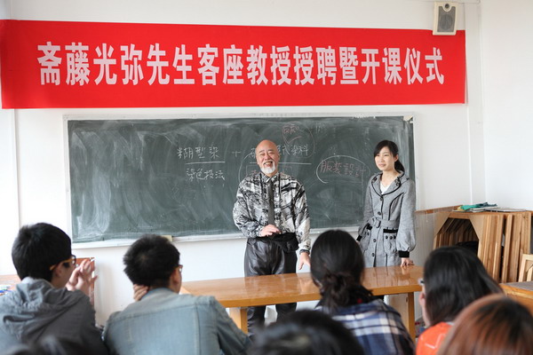 3月31日下午,知名染色艺术家、日本文化学园大学教授斋藤光弥先生在西校区厚德楼210室为司机社