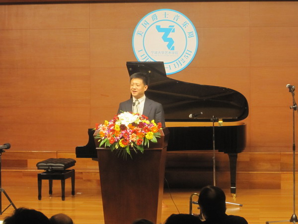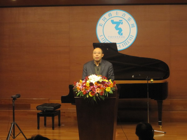 赵伐副校长在开幕式上致辞,他希望“美国爵士音乐周”能为宁大的校园文化以及宁波的“文化大市”建设增添一抹亮丽的风景。院长喻辉在致辞中也希望学院能通过国际化的艺术交流,“站在巨人的肩膀上起飞”。