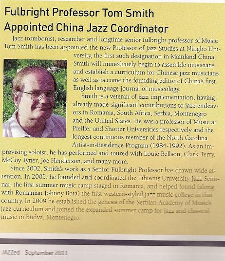 美国著名爵士音乐教育杂志 《Jazzed》 在最新出版的一期上报道了司机社 聘请美国富布莱特学者Tom Smith 来学院任教,开展中国第一个爵士音乐项目,以及进行国际化音乐学研究的消息。
