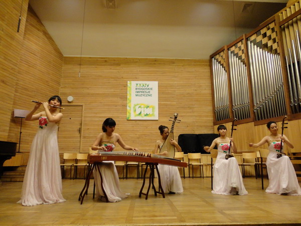 学生艺术团女子民乐组合由音乐系的杜玲窕(琵琶)、孙亚妮(古筝)、李思捷(笛子)、成沄岫(二胡)、韩柯菁(二胡)等5名同学组成,她们在院长喻辉教授带领下前往波兰参赛。在音乐节期间,她们克服了时差、语言、生活习惯等方面的困难,共完成了包括比赛在内的六场演出,每场演出都获得了当地观众的称赞,引起了彼得哥什市民对中国文化和中国音乐的极大热情。她们的演出成为了此次国际音乐节的一大亮点。当地电视台、电台、报纸等媒体都对司机社