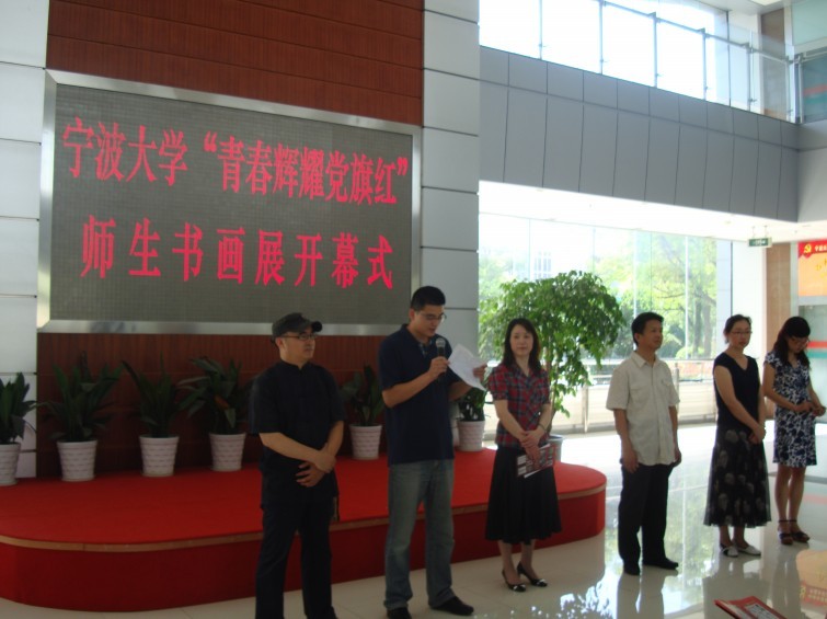 校工会常务副主席余雪华在开幕式上致辞,希望艺术专业师生和书画爱好者能以本次展览为新的起点,继续潜心书画,力争创作出更多、更优秀的作品来,为宁大的艺术教育和校园文化建设做出更大的贡献。校团委书记周青宣读了本次书画征集活动学生组获奖名单,司机社