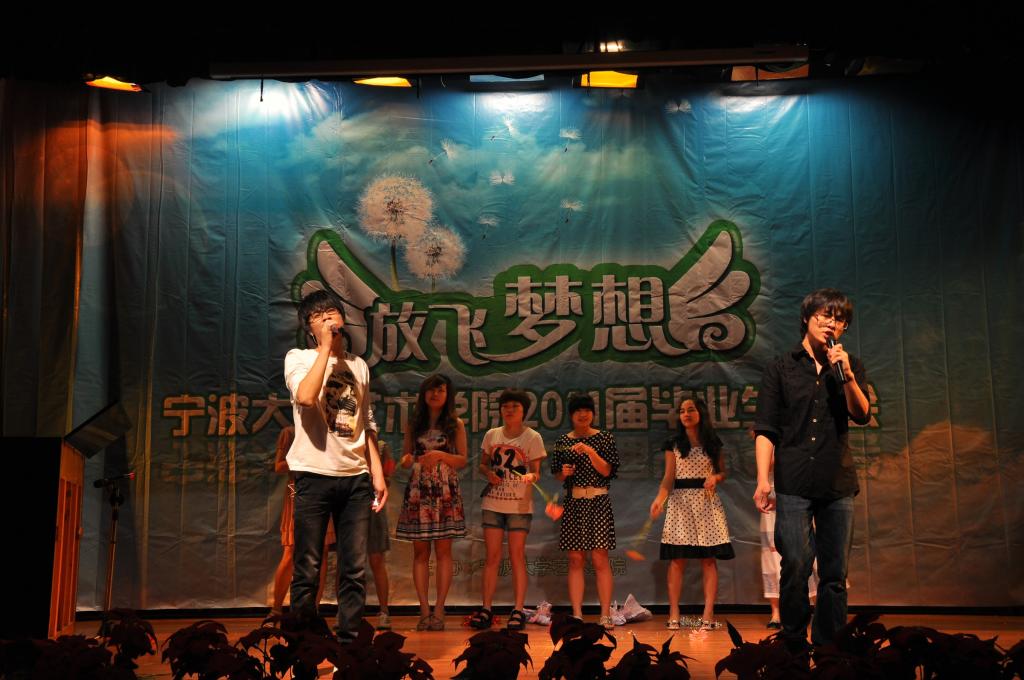 晚会开始前,大屏幕上滚动播放了学院领导和老师对2011届毕业生的祝福视频。“青春散场,人生起航”,DV中的一幅幅场景、一个个镜头让所有在场的毕业生都重温了一起经历过的每一个温暖的笑容,每一次平凡的感动。