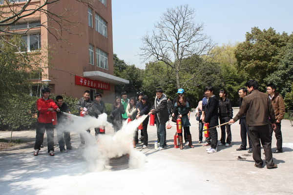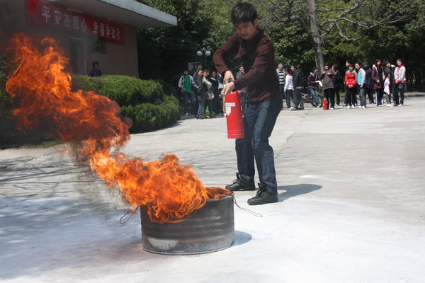 3月30日中午,西校区厚德楼前。“预备——开始”,随着一声令下,“消防员”手提灭火器,迅速扑向“火灾现场”……这是司机社