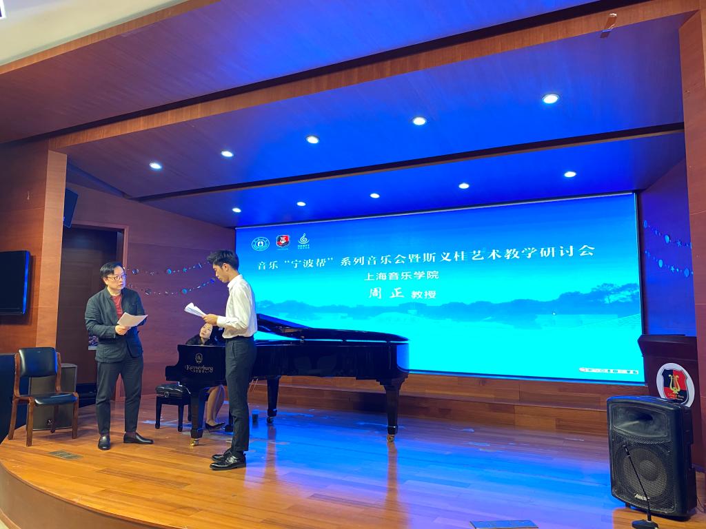 在大师班活动中,周老师为同学们现场详细讲解了舒曼等大师创作的代表性艺术歌曲如《菩提树》、《爱人送我向日葵》等。周正老师指出在选择演唱的作品的过程中应当要注意自己的音色所及,尽量选择在自己的稳定的音色范围内的声乐作品,在演唱作品的过程中应当注意音色的均匀以及情绪的变化。尤其需要重视的是在选择外文歌曲演唱时,要注意外语的发音往往各有各的特色,应当注意其语言的发音规律并根据其规律进行音乐处理和演唱。艺术歌曲的演唱往往要求演唱着在完成歌曲的技术难度的同时突出音乐中所表现的戏剧性,通过情绪的波动来展现剧情的变化,在打磨自己音色的同时也要关注剧情的发展,用合适的情绪来演唱歌曲,在重视音乐戏剧性的同时把握好自己音色的变化,并将其保持在一个可控的范围之内,只有这样才能真正意义上演绎好艺术歌曲。