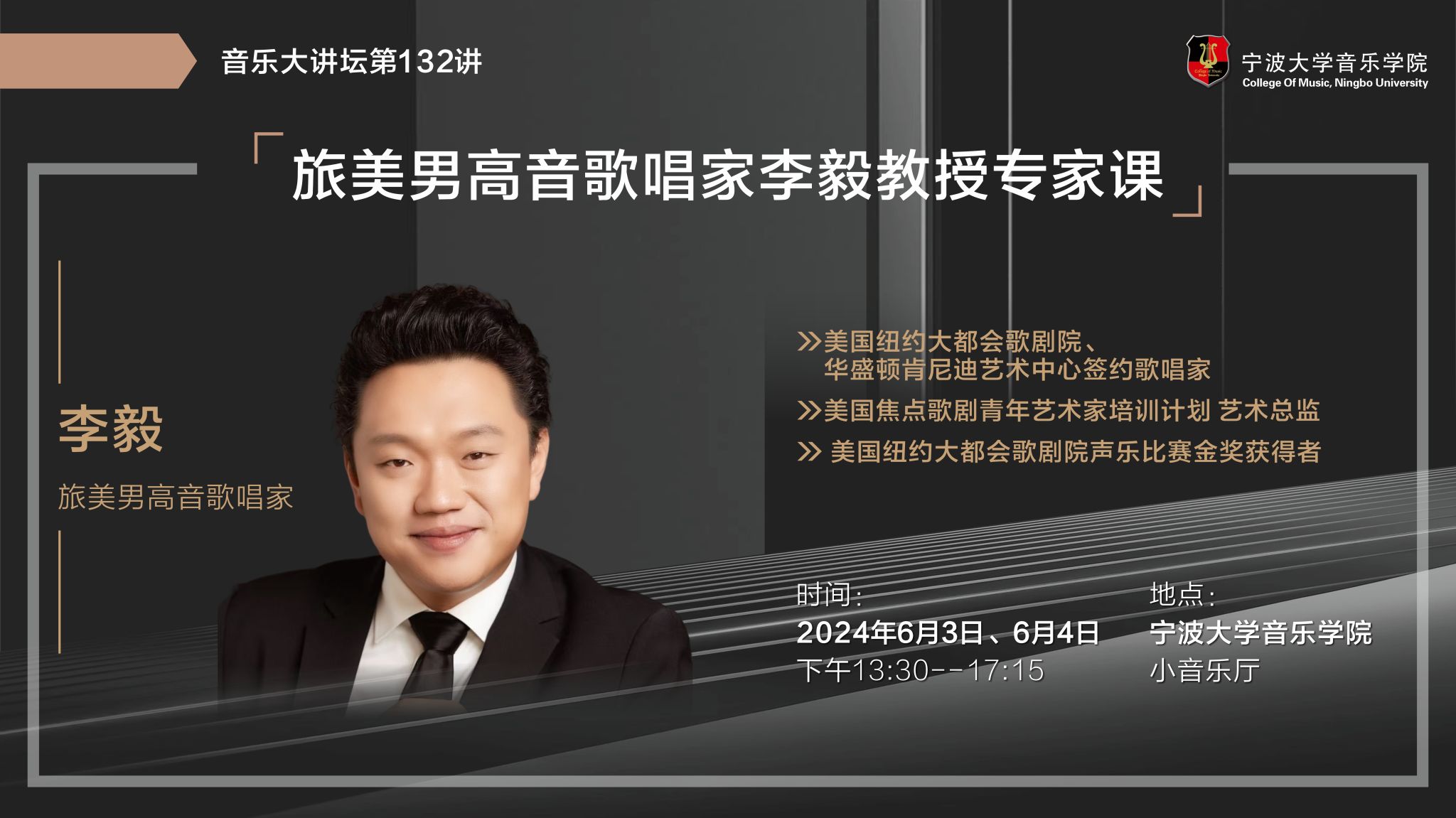 主讲人简介:李毅,旅美男高音歌唱家,美国纽约大都会歌剧院、华盛顿肯尼迪艺术中心签约歌唱家,美国焦点歌剧青年艺术家培训计划艺术总监,美国纽约大都会歌剧院声乐比赛金奖获得者。