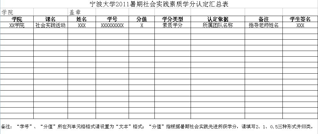 艺术学院2011年暑期社会实践活动素质学分认定工作的通知