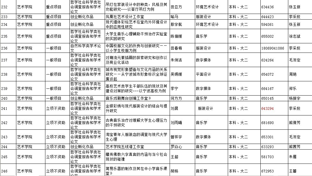 经学院初审及推报,学校组织专家小组对各项目进行最终评审,拟确定2013年司机社 大学生科技创新(SRIP)立项项目580项,其中重点立项项目116项,一般立项项目165项,立项不资助项目281项。现将拟立项名单进行公示,艺术学院一共入围18项,具体名单见附件。