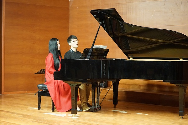 孙悦湄教授爱徒黄海文、杨敏与孙铭澧博士合作呈现了精彩的莫扎特歌剧《费加罗的婚礼》的男女声二重唱,让听众仿若身临其境;琵琶演奏家徐明慧老师袭一身典雅旗袍为听众娓娓道来了古典名曲《春江花月夜》,充满了万千意蕴;小提琴演奏家俞笛老师和施坦威艺术家郑洁博士合作演奏了贝多芬A大调小提琴与钢琴奏鸣曲Op.12第一乐章,音乐里充满了憨态可掬的形象。郑洁博士独奏了中国名曲《梅花三弄》,呈现了梅花高雅、谦逊、坚毅的品格。最后,郑洁博士与其爱徒合作了四手联弹作品勃拉姆斯《匈牙利舞曲》第一首,音乐充满了匈牙利和吉普赛民族音乐元素,热烈奔放,使整场精巧的音乐会进入了高潮!小音乐厅只剩下了热烈的掌声与兴奋的欢呼声。