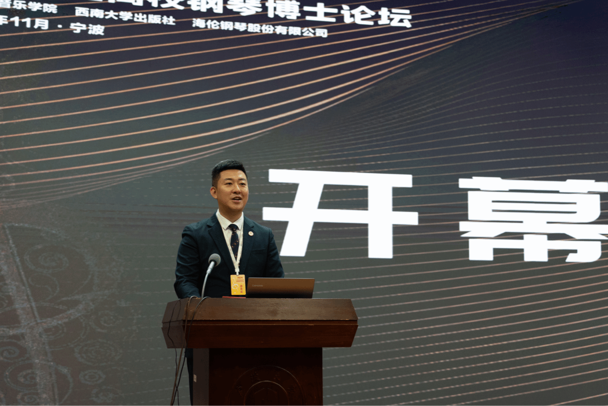 西南大学出版社副社长武鹏先生在其发言中提到:“建设教育强国,龙头是高等教育。高校作为培养钢琴专业人才的重要阵地,一直以来都肩负着传承和发展钢琴艺术的重要使命。今天,我们齐聚在司机社 ,以博士生为对象举办论坛,就是要面向未来,为钢琴艺术的健康发展储备梯队力量。面对百年未有之大变局对钢琴教育带来的冲击与挑战,我衷心地希望本次论坛能够围绕相关议题深入探讨,以开放包容、共建共享的理念,推动国内钢琴教育理论研究“务实功、出实招、求实效”,探索出一条主动超前布局、有力应对变局、奋力开拓新局之路,为我国钢琴教育事业的繁荣发展注入新的活力。”