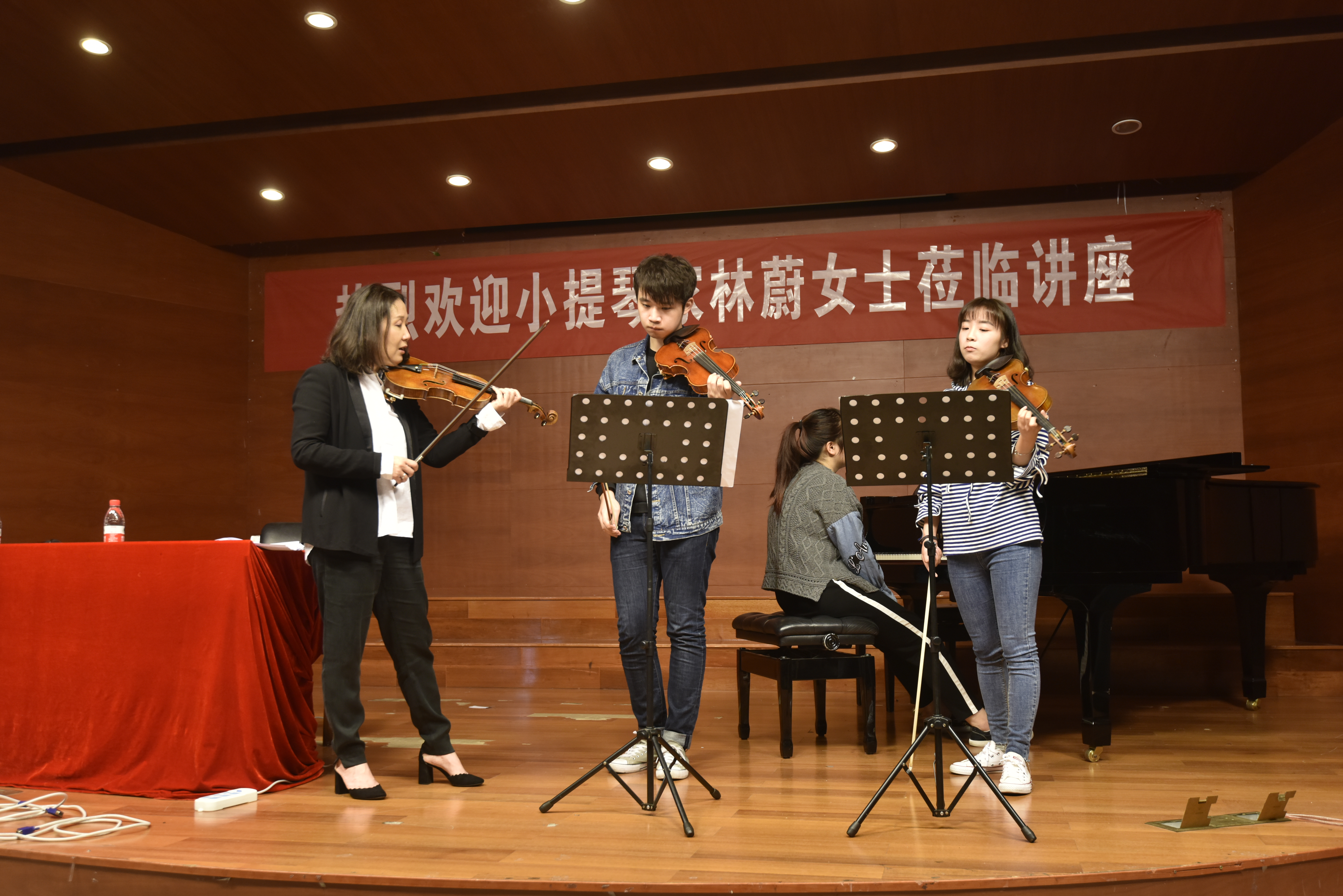 西校区小音乐厅开展题为《站在小提琴外看小提琴》的讲座。讲座由董丽莉老师主持,院长俞子正和部分师生参加。