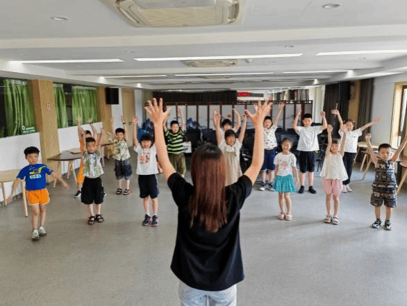 在合唱教学环节,暑期实践团队的成员们通过想象自己是大树的新颖设计让小朋友们感受声音的不同,从而理解合唱多声部的概念。教授了学生对基本的音符、节奏、音阶的认识,提高了学生们的基本音乐素养。