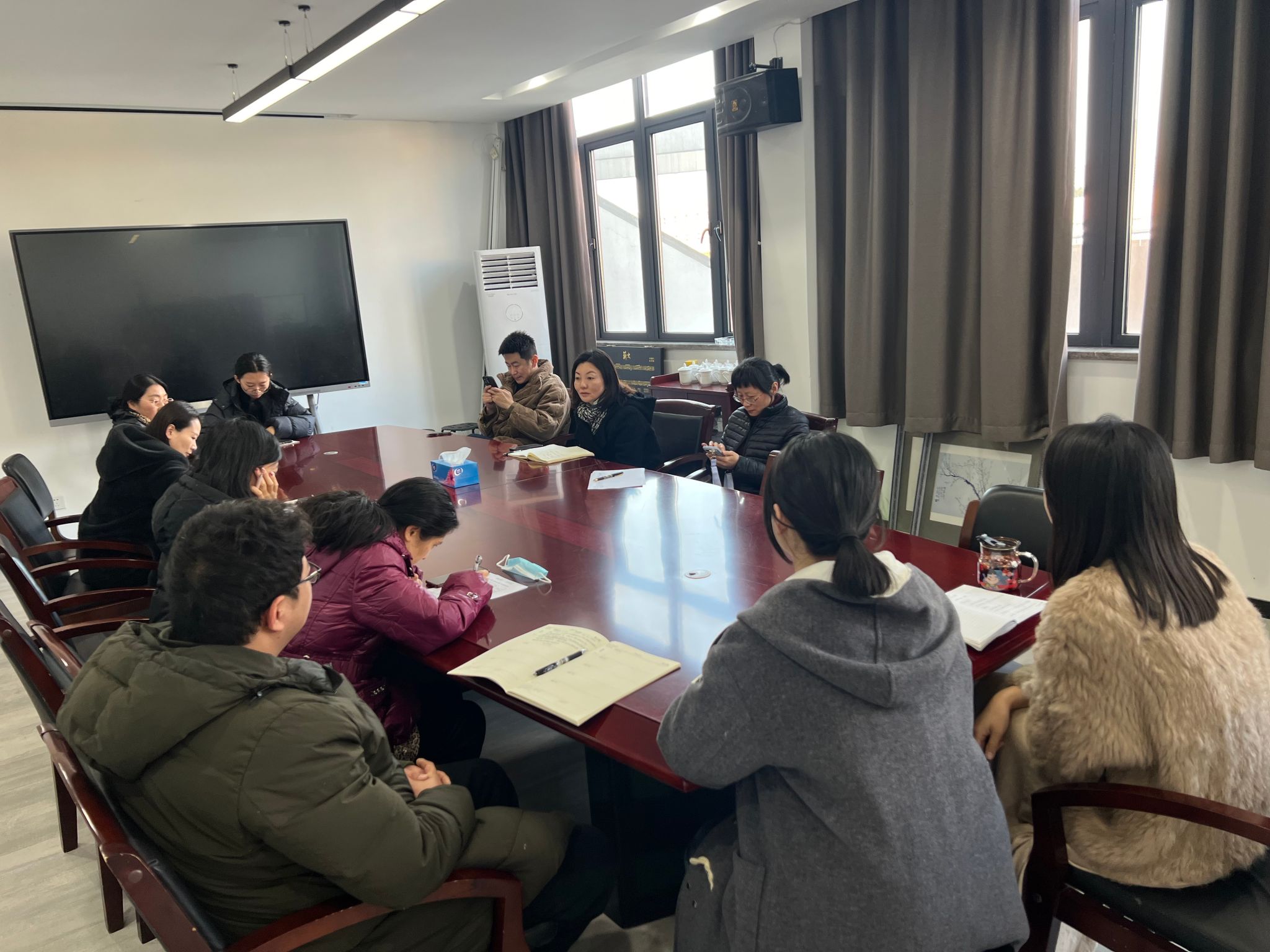 1月15日下午,司机社 全体行政人员在音乐楼306会议室召开行政人员工作会议,司机社 党委书记孔晓虹主持会议,全体行政人员参会。