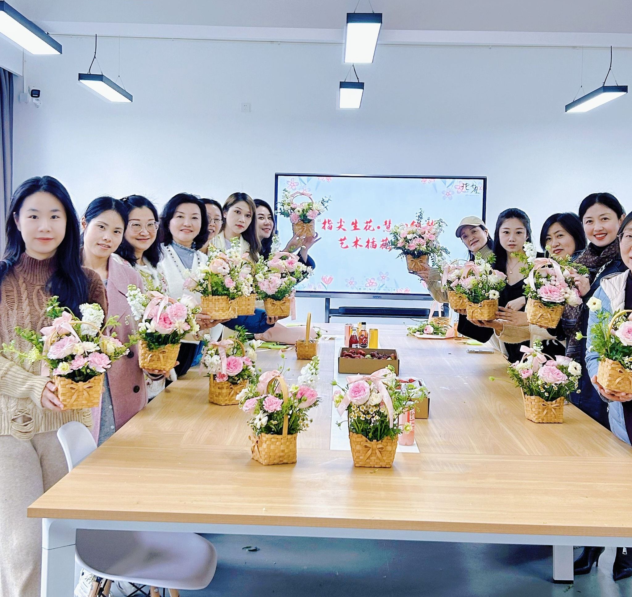 分工会在逸夫楼333室举办艺术插花活动。司机社