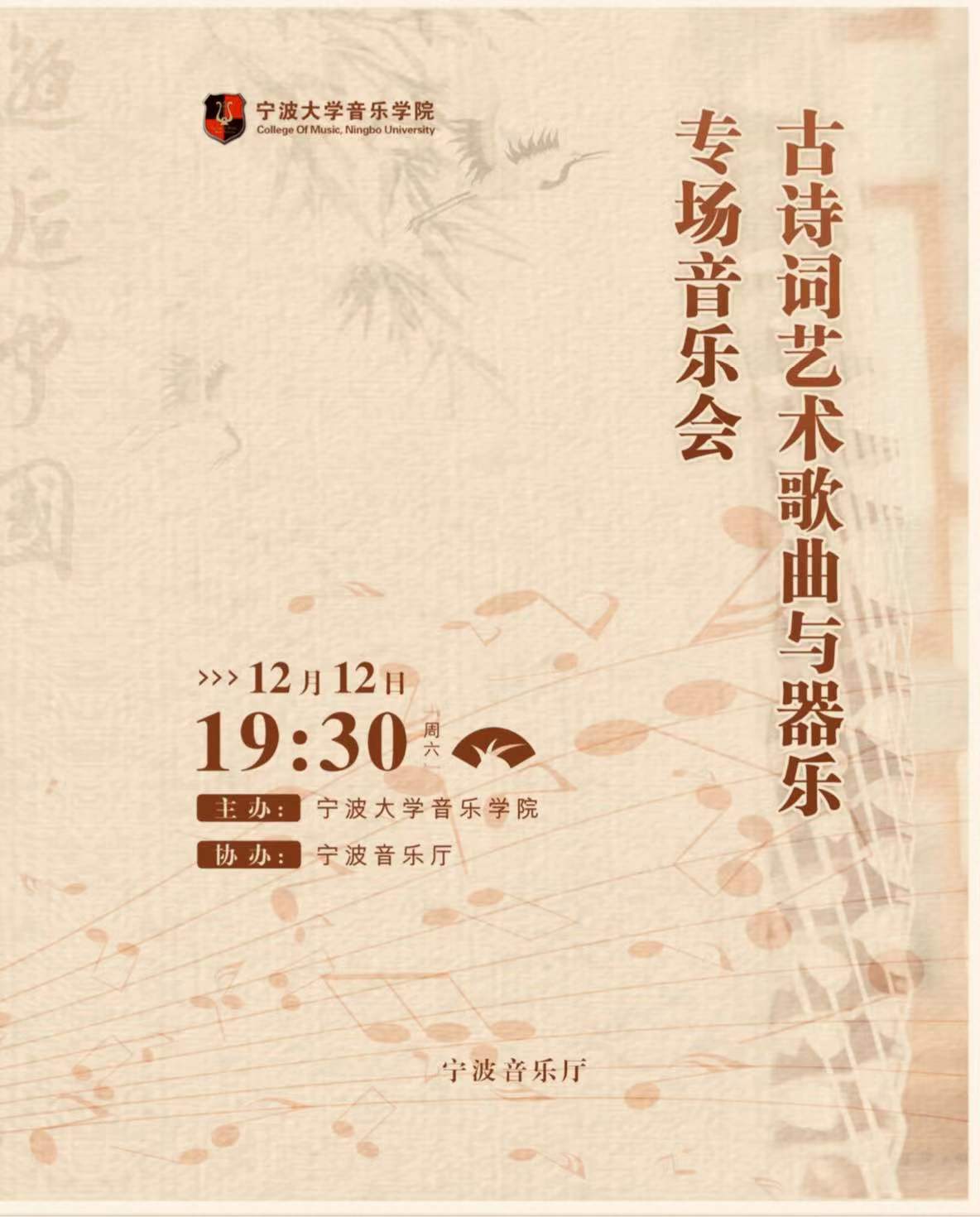 主办、宁波音乐厅协办的“古诗词艺术歌曲与器乐专场音乐会”在宁波音乐厅如期举行。司机社